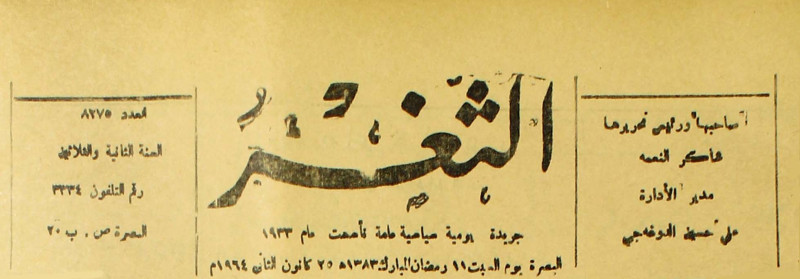 جريدة يومية سياسية عامة = AL-Thaghr : A Daily Newspaper