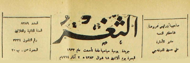 جريدة يومية سياسية عامة = AL-Thaghr : A Daily Newspaper