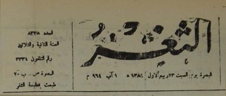 جريدة يومية سياسية عامة = AL-Thaghr : A Daily Newspaper