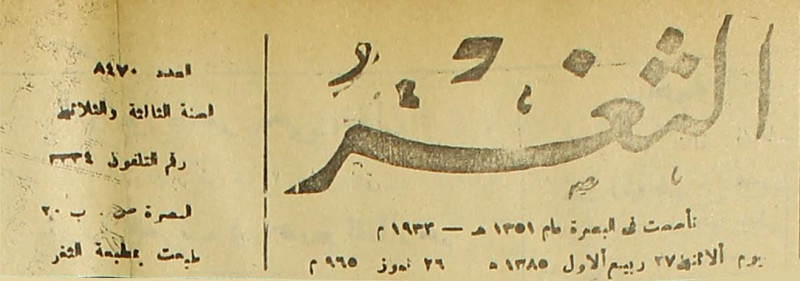 جريدة يومية سياسية عامة = AL-Thaghr : A Daily Newspaper