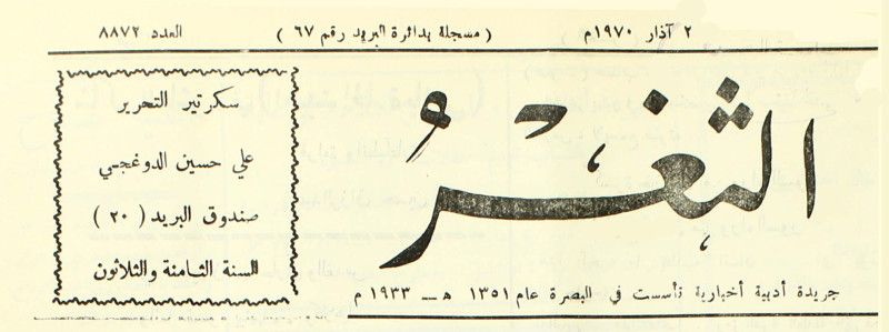 جريدة يومية سياسية عامة = AL-Thaghr : A Daily Newspaper