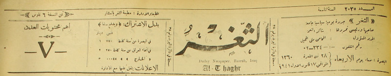 جريدة يومية سياسية عامة = AL-Thaghr : A Daily Newspaper