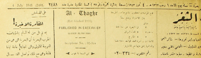 جريدة يومية سياسية عامة = AL-Thaghr : A Daily Newspaper