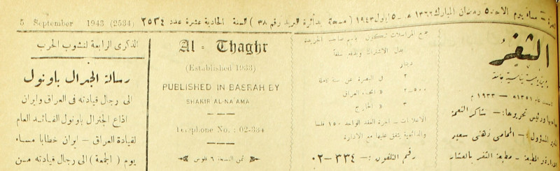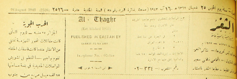 جريدة يومية سياسية عامة = AL-Thaghr : A Daily Newspaper