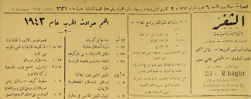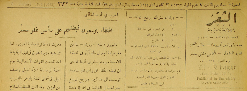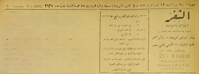 جريدة يومية سياسية عامة = AL-Thaghr : A Daily Newspaper