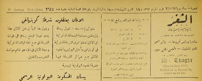 جريدة يومية سياسية عامة = AL-Thaghr : A Daily Newspaper