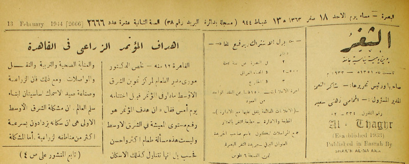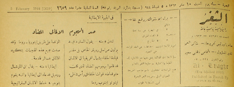 جريدة يومية سياسية عامة = AL-Thaghr : A Daily Newspaper