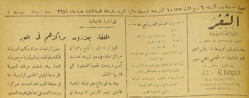 جريدة يومية سياسية عامة = AL-Thaghr : A Daily Newspaper