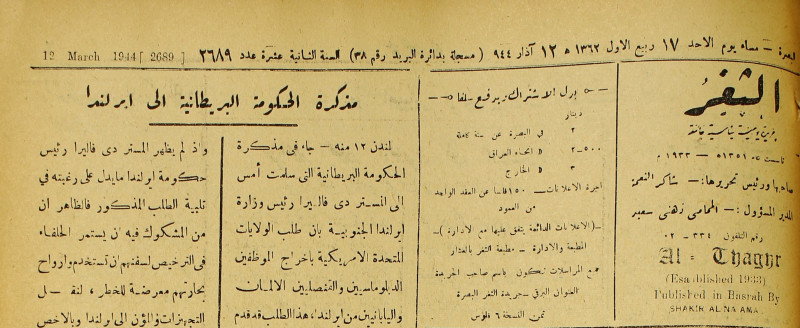 جريدة يومية سياسية عامة = AL-Thaghr : A Daily Newspaper