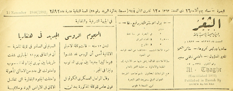 جريدة يومية سياسية عامة = AL-Thaghr : A Daily Newspaper