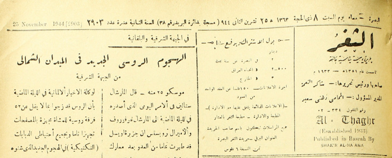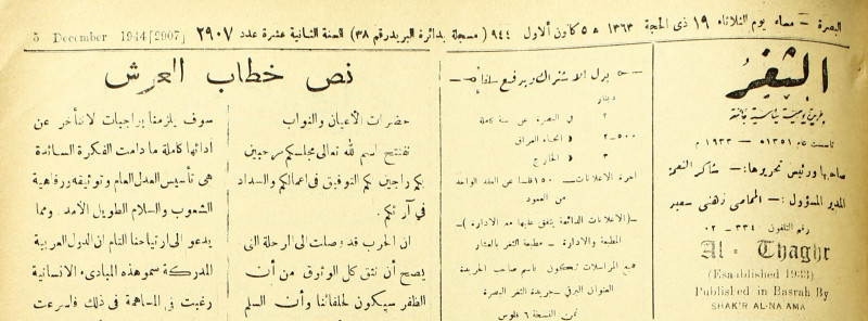 جريدة يومية سياسية عامة = AL-Thaghr : A Daily Newspaper
