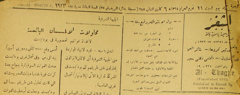 جريدة يومية سياسية عامة = AL-Thaghr : A Daily Newspaper