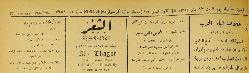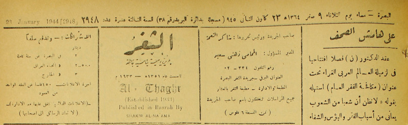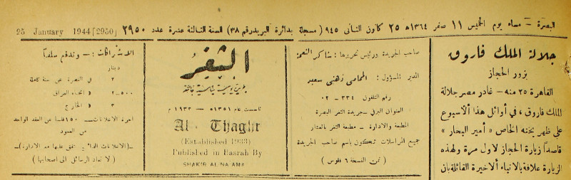 جريدة يومية سياسية عامة = AL-Thaghr : A Daily Newspaper