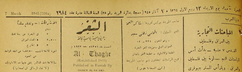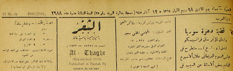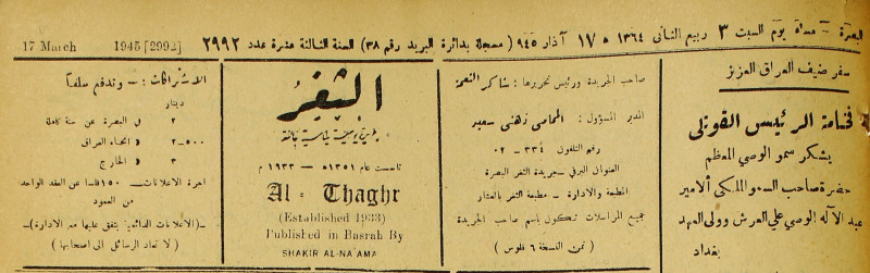 جريدة يومية سياسية عامة = AL-Thaghr : A Daily Newspaper