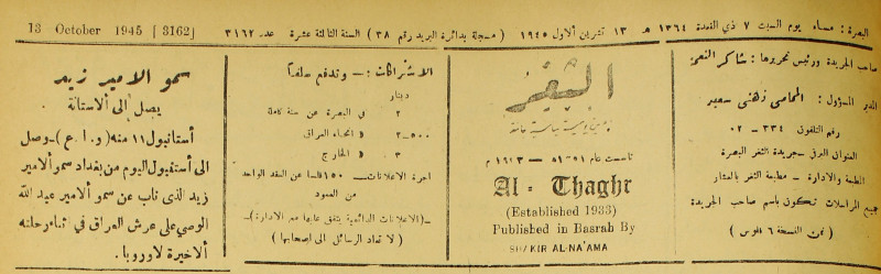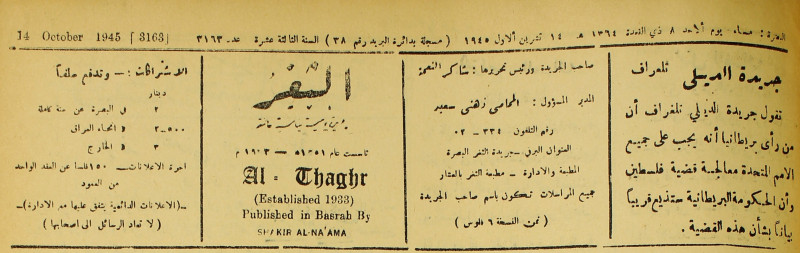جريدة يومية سياسية عامة = AL-Thaghr : A Daily Newspaper