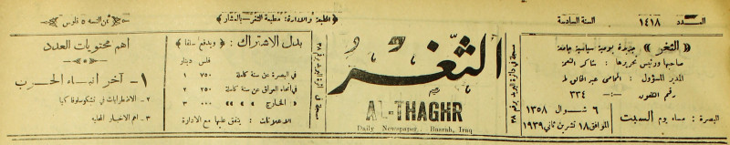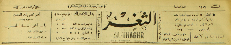 جريدة يومية سياسية عامة = AL-Thaghr : A Daily Newspaper