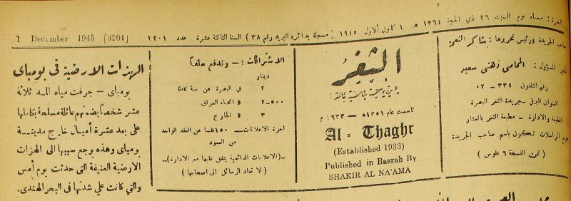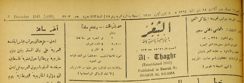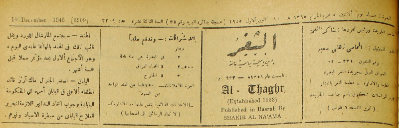 جريدة يومية سياسية عامة = AL-Thaghr : A Daily Newspaper