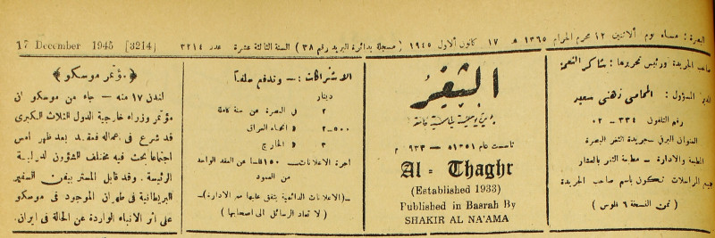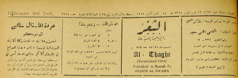جريدة يومية سياسية عامة = AL-Thaghr : A Daily Newspaper