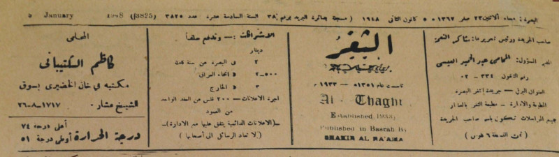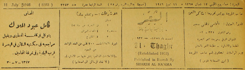 جريدة يومية سياسية عامة = AL-Thaghr : A Daily Newspaper