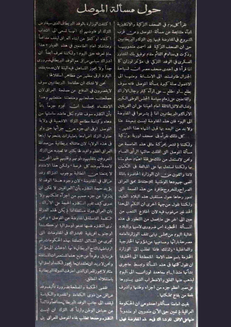 حول مسألة الموصل.