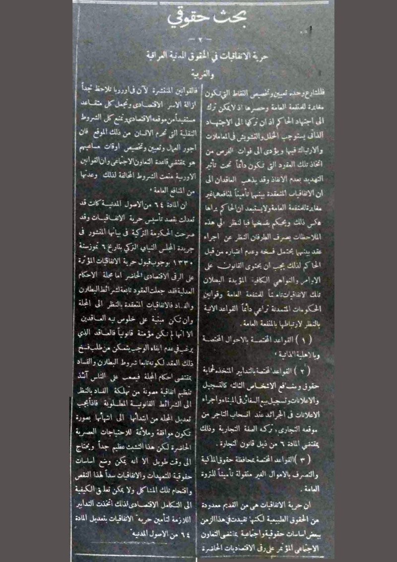 حرية الاتفاقيات في الحقوق المدنية العراقية والغربية.