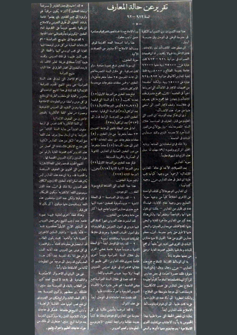 تقرير عن حالة المعارف لسنة 922 - 923.