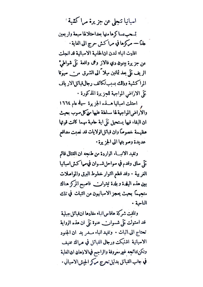 اسبانيا تنجلى على جزيرة مراكشية.