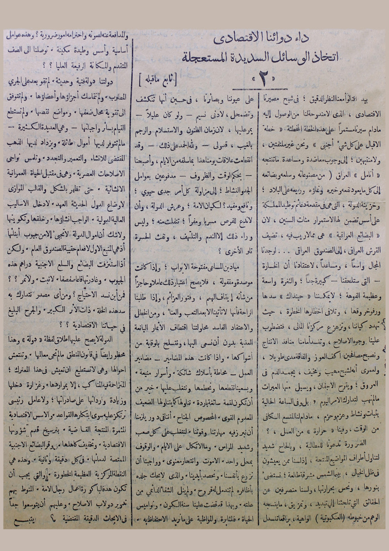 داء دوائنا الاقتصادي اتخاذ الوسائل السديدة المستعجلة.