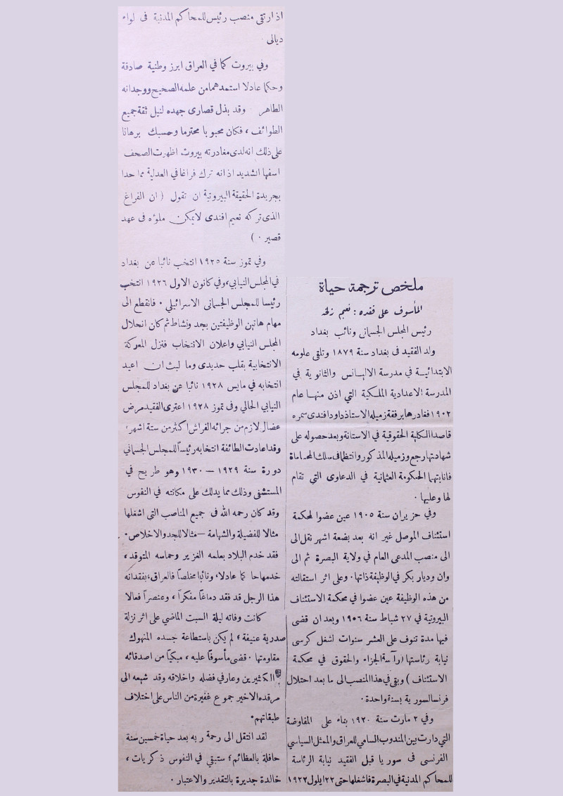 ملخص ترجمة حياة المأسوف على فقده نعيم زلخة.