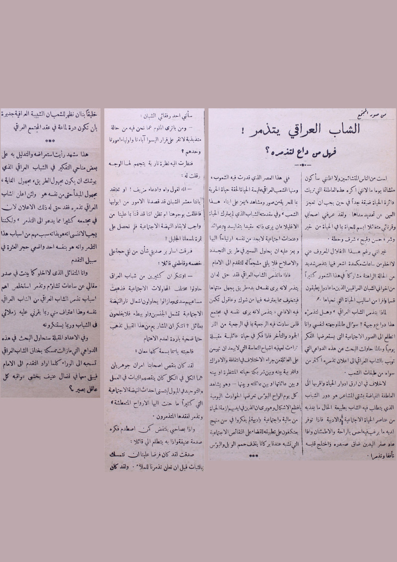 الشاب العراقي يتذمر فهل من داع لتذمره؟.