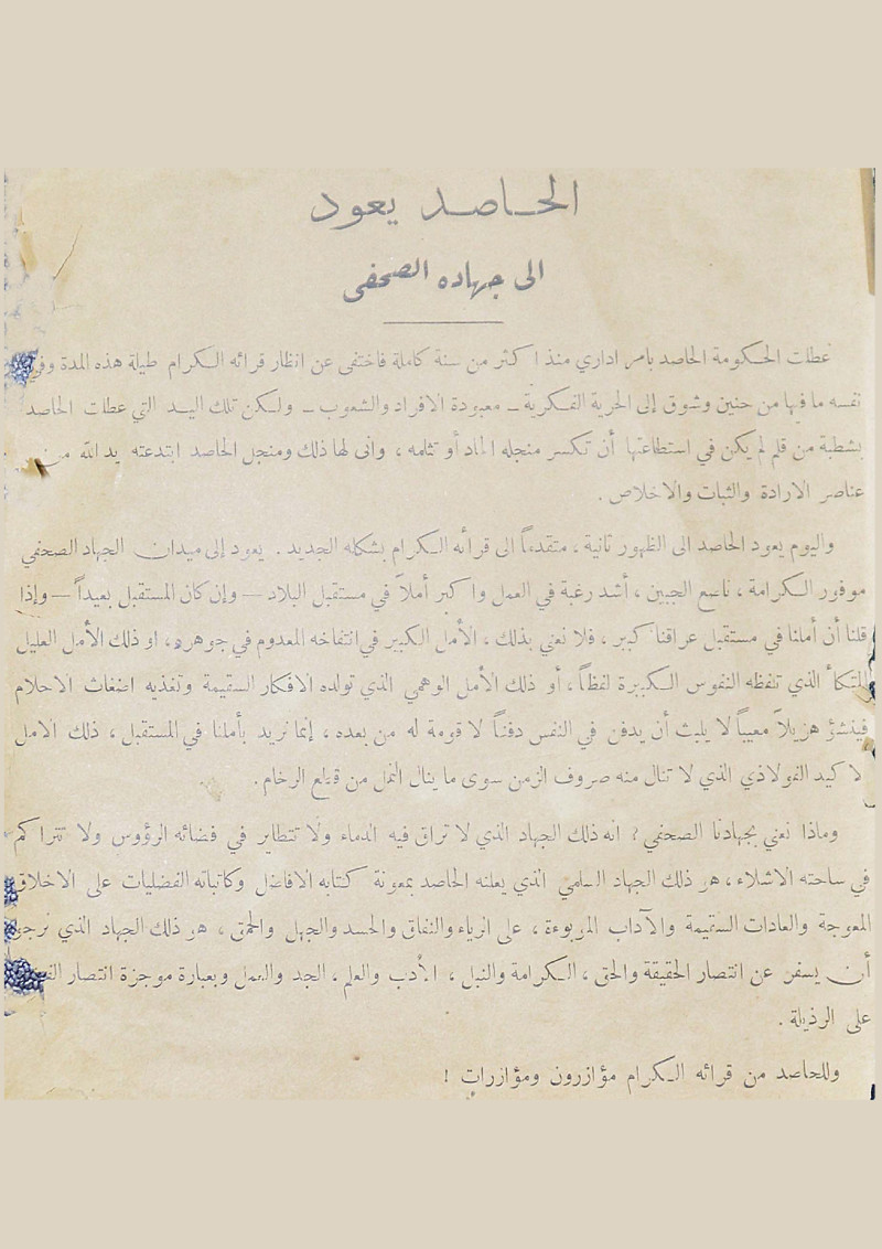 الحاصد يعود الى جهاده الصحفى.