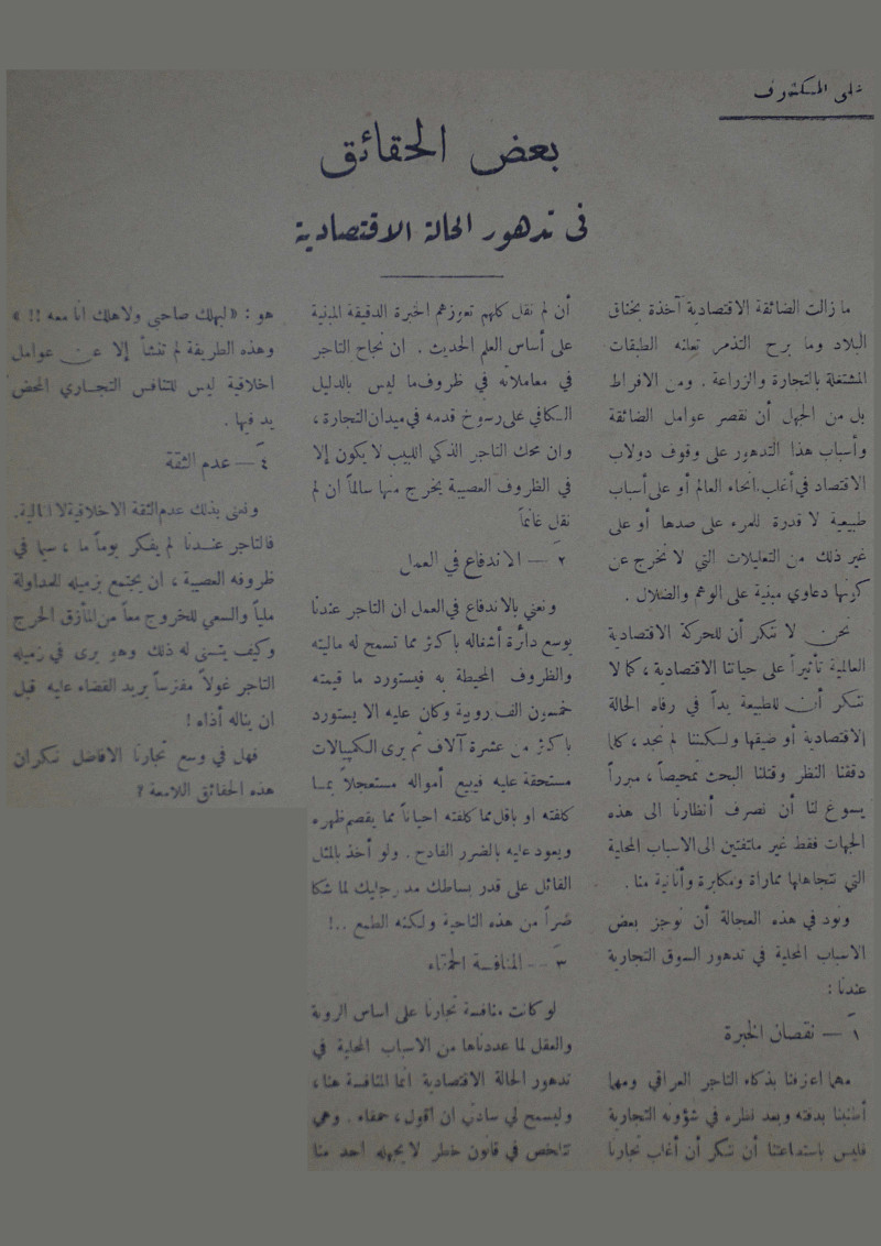 بعض الحقائق في تدهور الحالة الاقتصادية.