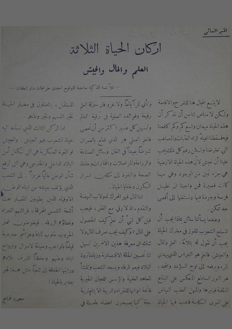 اركان الحياة الثلاثة : العلم والمال والجيش :