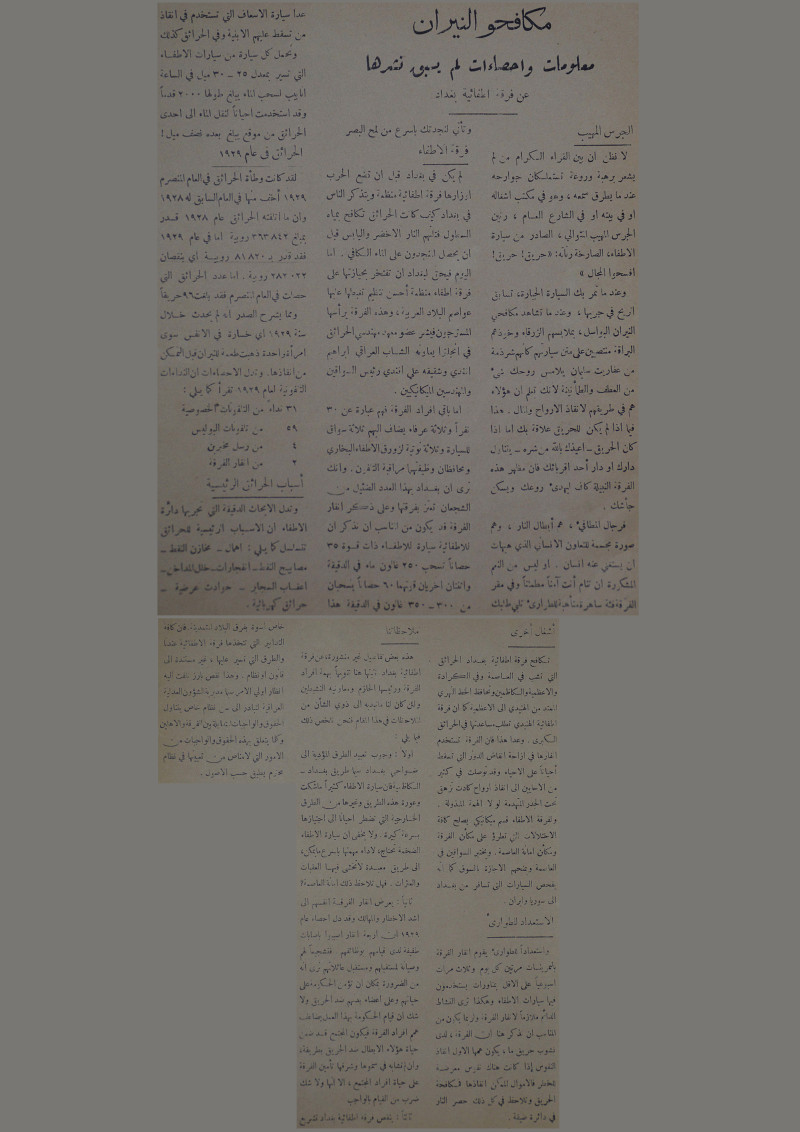 معلومات واحصاءات لم يسبق نشرها عن فرقة اطفائية بغداد.