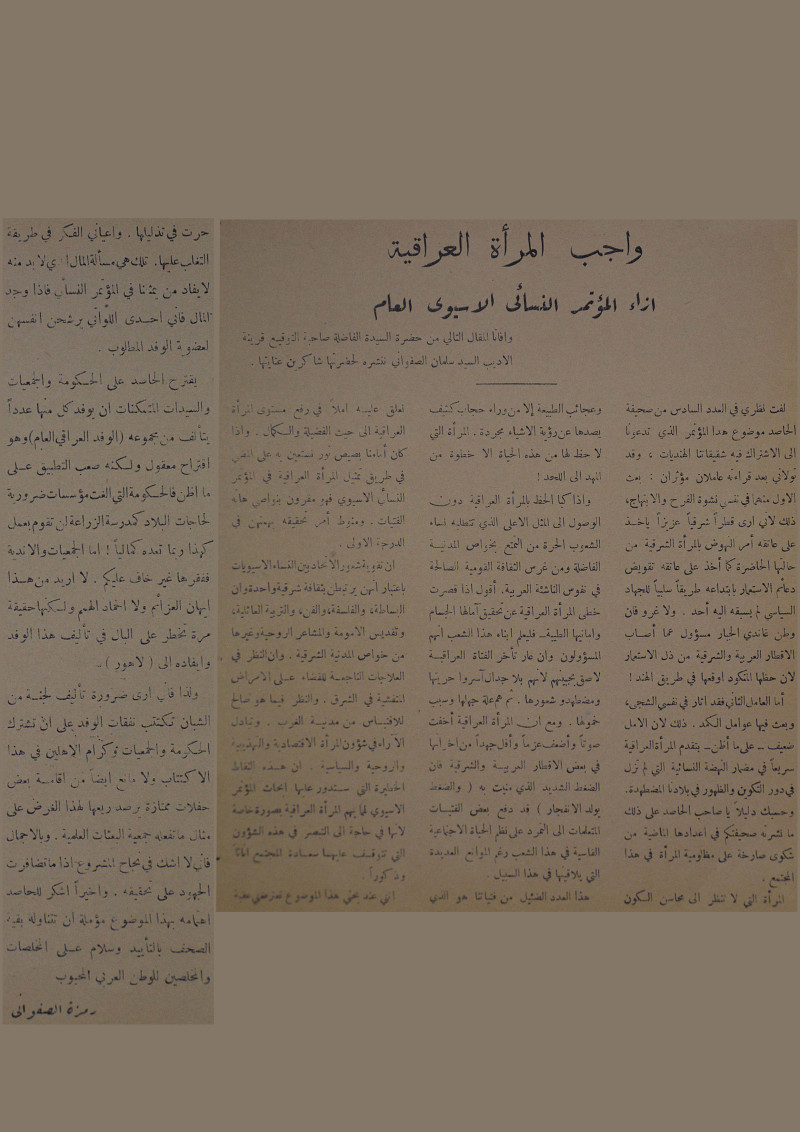واجب المرأة العراقية ازاء المؤتمر النسائي الاسيوى العام.