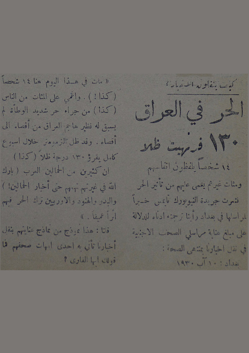 الحر في العراق 130 فرنهيت ظلا.