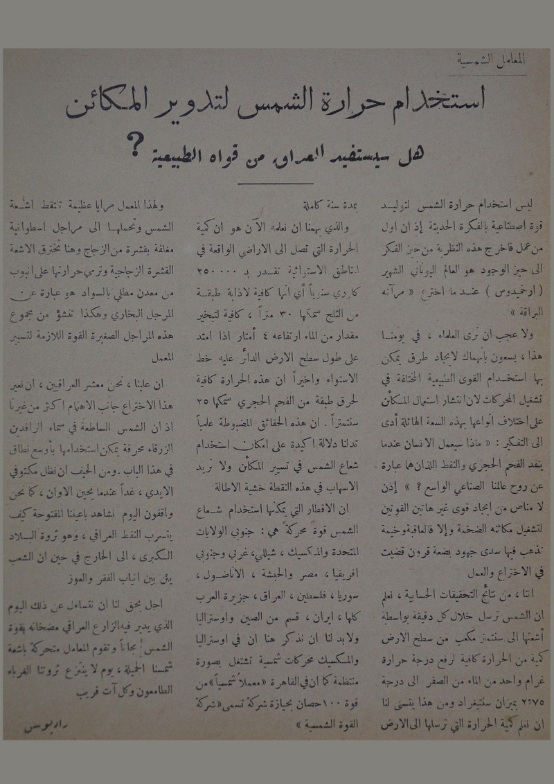 استخدام حرارة الشمس لتدوير المكائن : هل سيستفيد العراق من قواه الطبيعة.