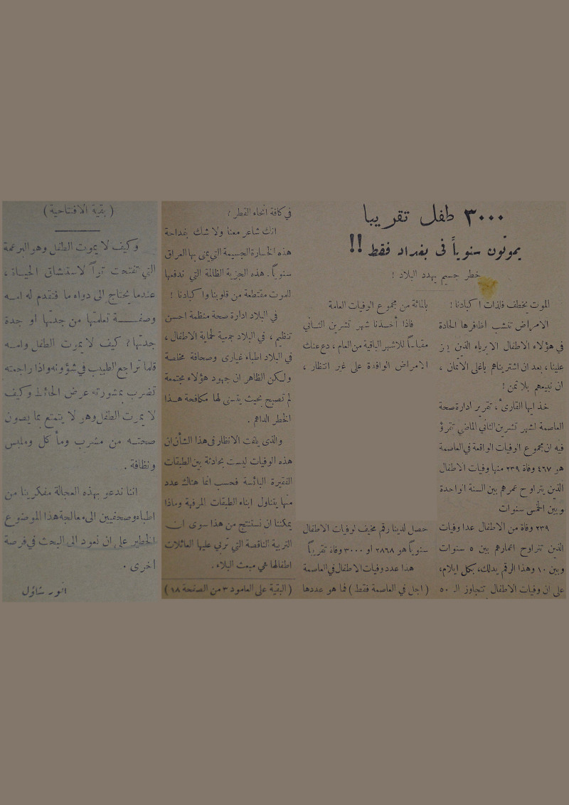 3000 طفل تقريبا يموتون سنويًا في بغداد فقط :