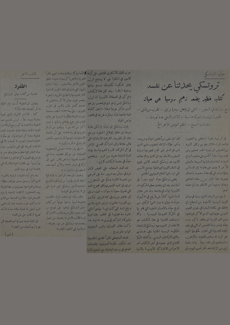 تروتسكي يحدثنا عن نفسه : كتاب خطير يضعه زعيم روسيا عن حياته.