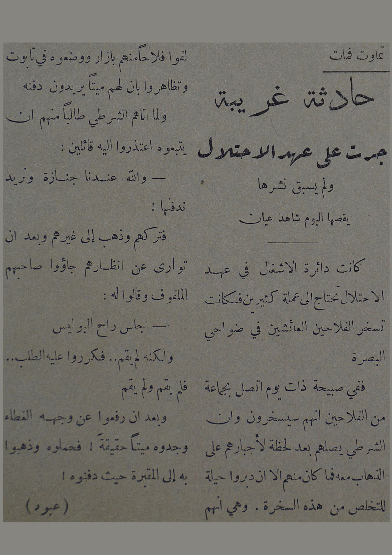 حادثة غريبة جرت على عهد الاحتلال ولم يسببق نشرها يقصها اليوم شاهد عيان.