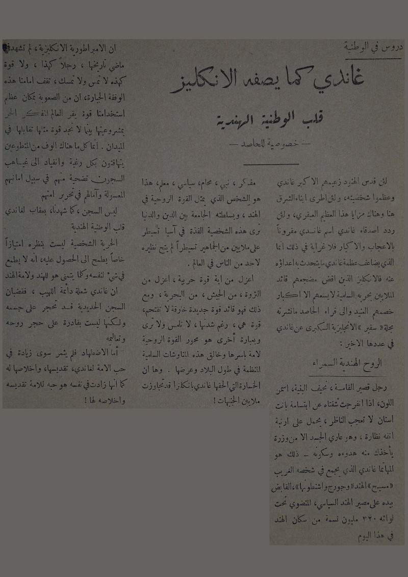 غاندي كما يصفه الانكليز : قلب الوطنية الهندية : خصوصية للحاصد.