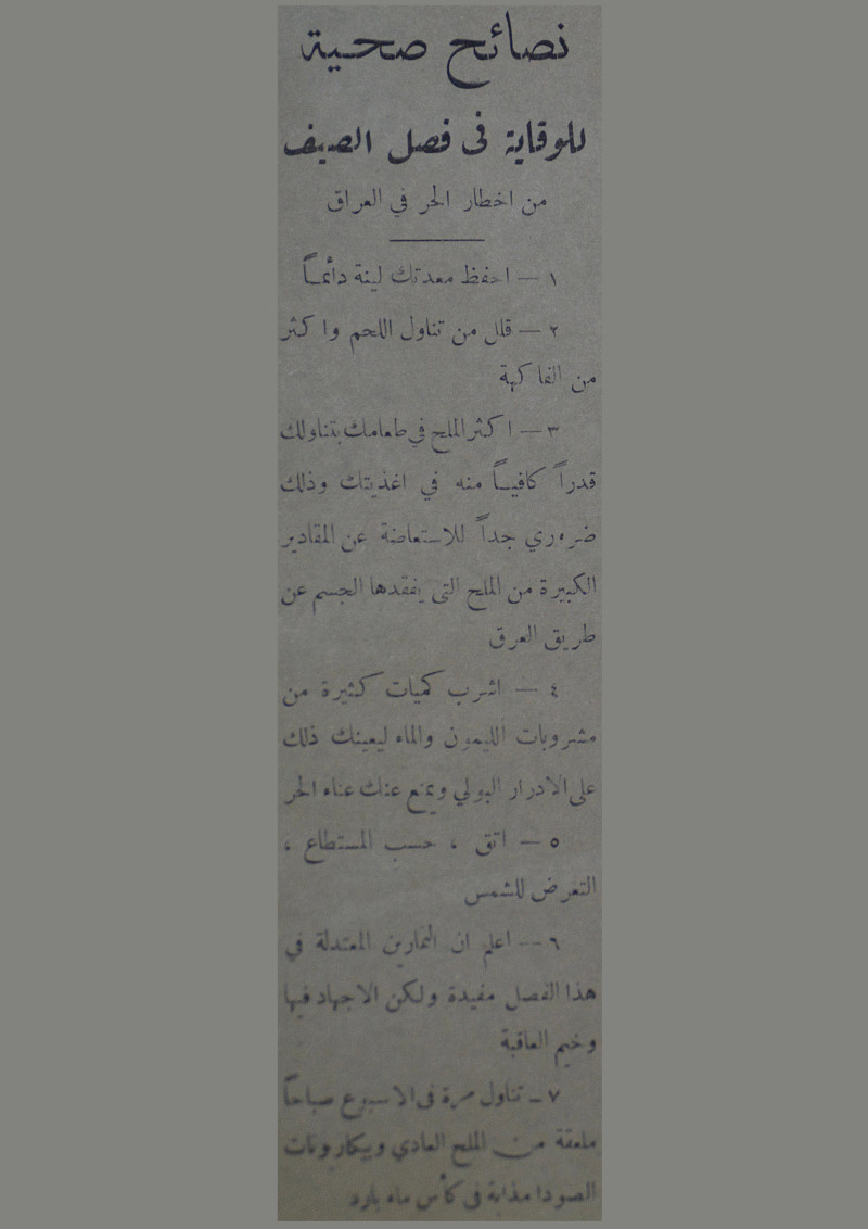 نصائح صحية للوقاية في فصل الصيف من اخطار الحر في العراق.