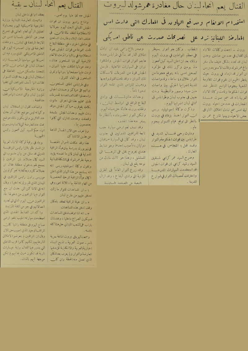 $iمتضمن في (عمل) : $tالحوادث : جريدة يومية سياسية $gالعدد 4642، السنة 17 (28 حزيران 1958)