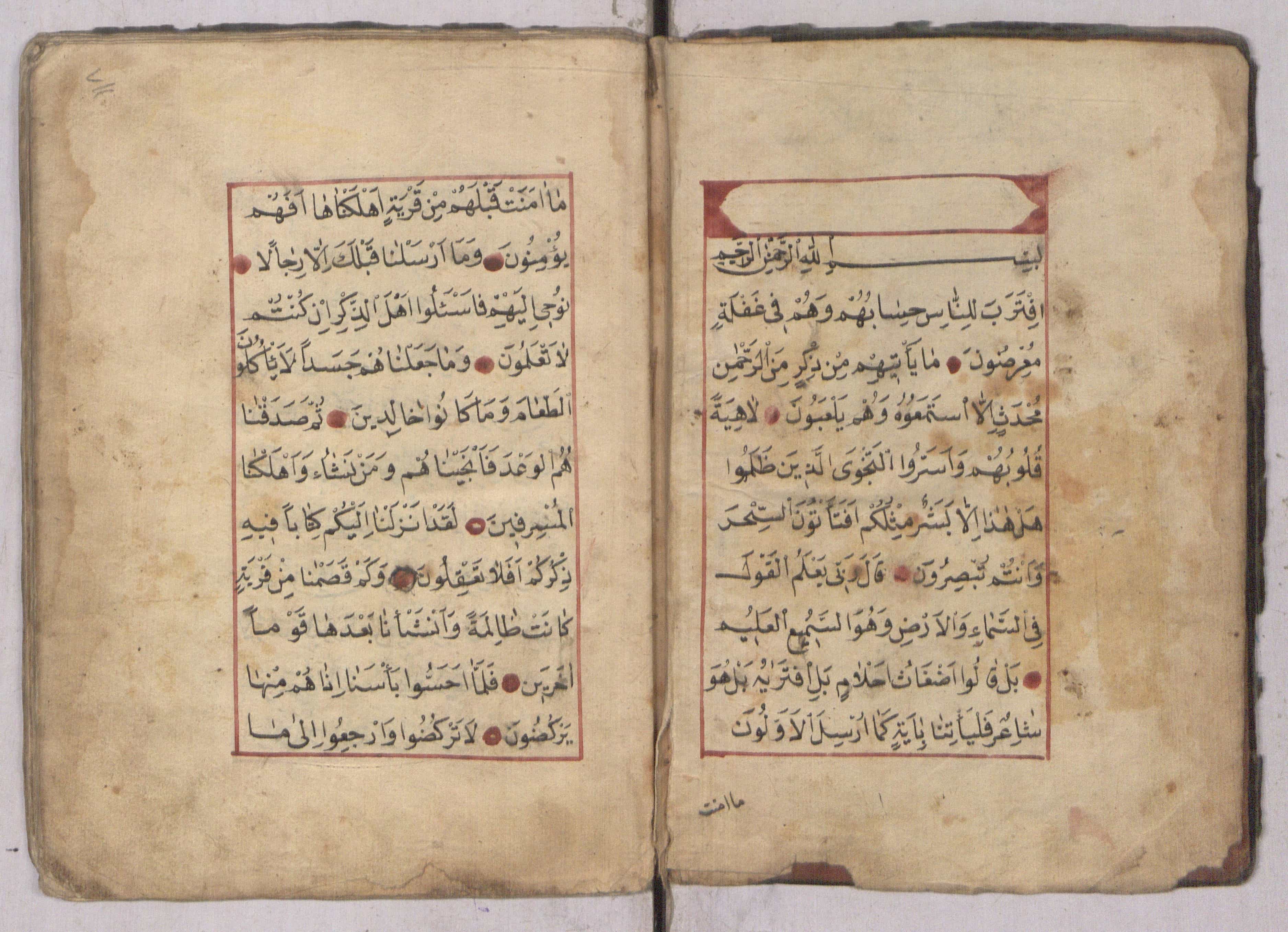 أّوله ناقص : ...اْقَتَرَب ِللَّناِس ِحَساُبُهْم َوُهْم ِفي َغْفَلٍة ُمْعِرُضوَن.