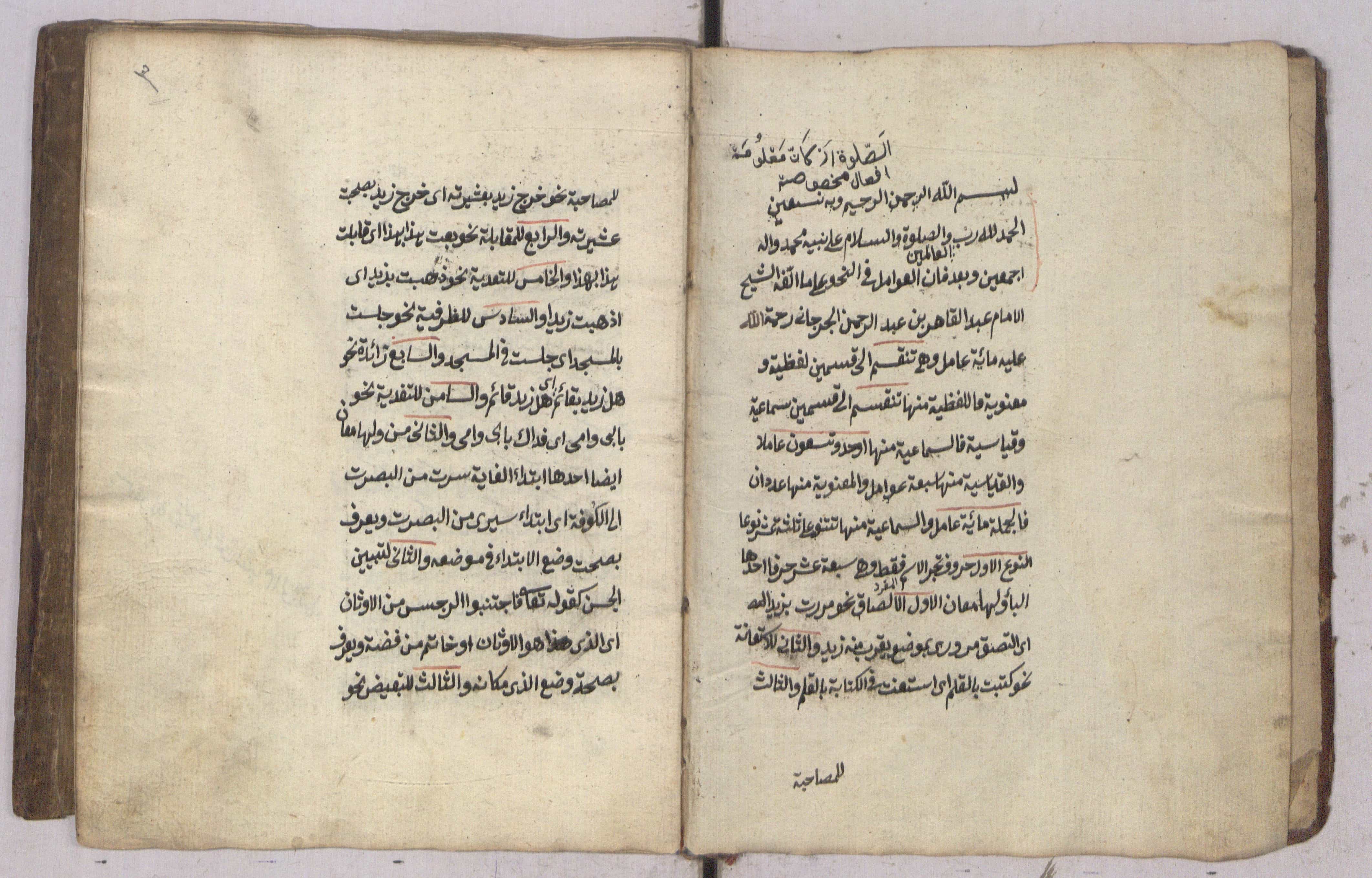 $aأوله : الحمد لله رب العالمين ... وبعد فان العوامل في النحو على ما ألفه الشيخ الامام عبد القاهر بن عبد الرحمن الجرجاني رحمة الله عليه مائة عامل.