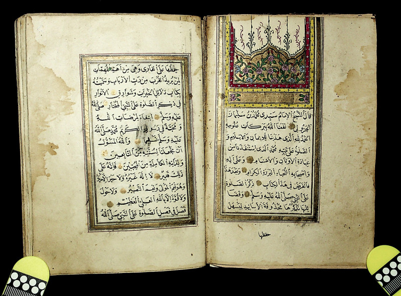 $aالنسخة خزائنية وفي بداية كل حزب توجد لوحة مزخرفة وملونة.