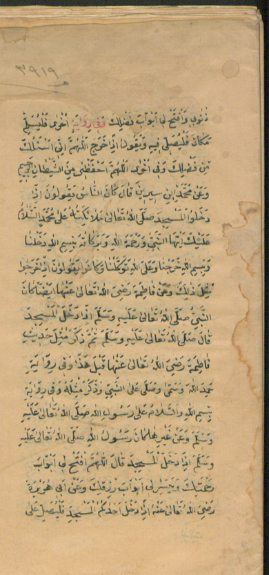 اوله ناقص : ...ذنوبي وافتح لي ابواب فضلك. وفي رواية اخرى فليسلم مكان فليصلي فيه ويقول اذا خرج اللهم اني أسئلك من فضلك وفي اخرى اللهم...