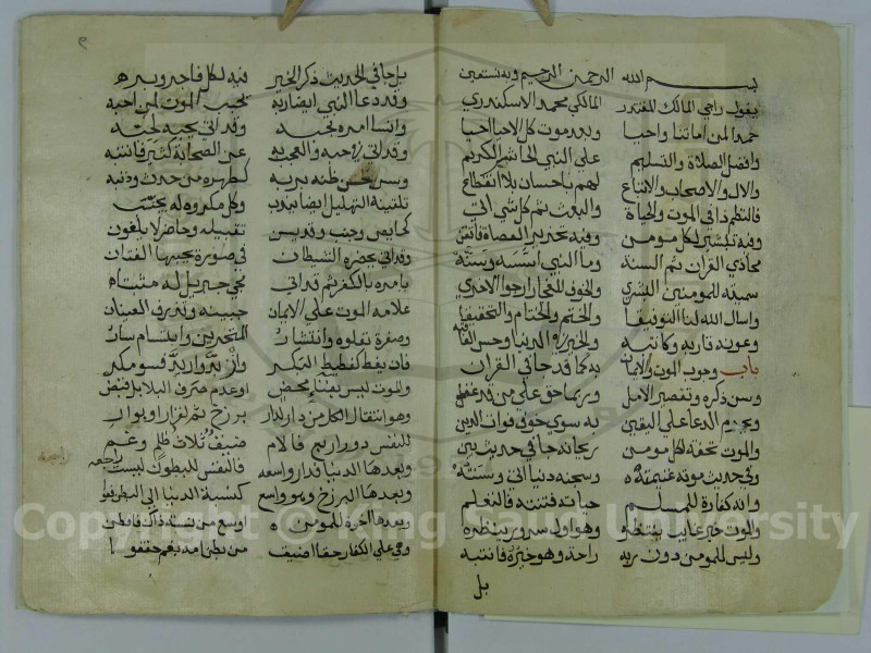 $aاوله : يقول راجي المالك المقتدر ** المالكي محمد الاسكندري حمدا لمن اماتنا واحيا ** وبعد موت كل الاحيا احيا وافضل الصلاة والتسليم ** على النبي الهاشمي الكريم والال والاصحاب والاتباع ** لهم باحسان بلا انقطاع.. سميته للمؤمنين البشرى ** والخوف للفجار ارجو الاخرى...