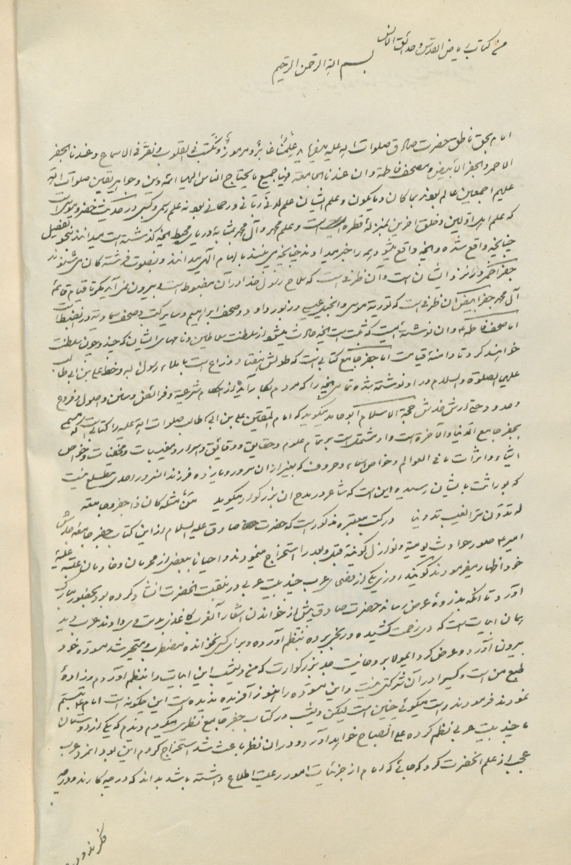 أوله : امام بحق ناطق حضرت صادق صلوات الله عليه مى فرمايد علمنا غابر و مرموز ونكت في القلوب ونقر في الاسماع وعندنا الجفر.