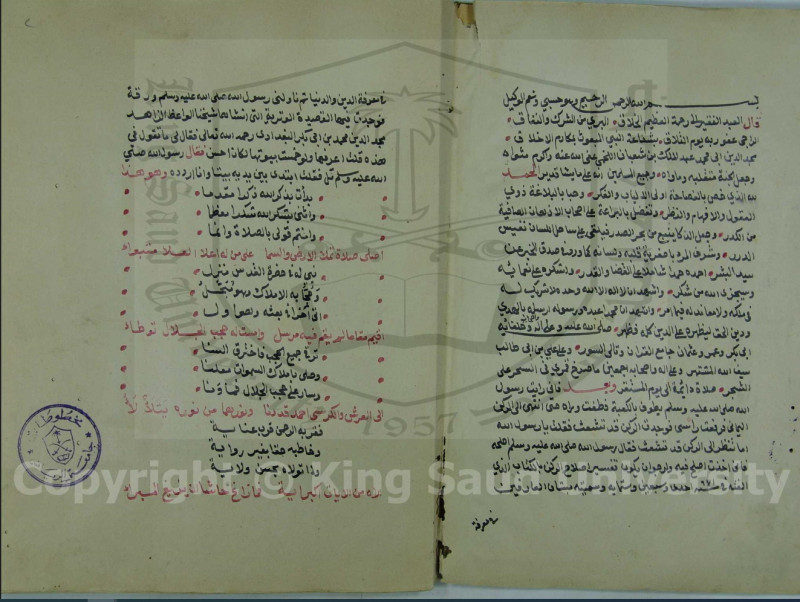 $aاوله : قال العبد الفقير الى رحمة العظيم الخلاق البريء من الشرك والنفاق الراجي عفو ربه يوم التلاق بشفاعة النبي المبعوث بمكارم الاخلاق مجد الدين ابي محمد عبد الملك بن شعبان اللخمي..القصيدة الوترية التي انشأها شيخنا الواعظ الزاهد مجد الدين محمد بن ابي بكر البغدادي.. ولو خمست بيوتها لكان احسن...